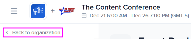 Or, from your event, you can click Back to organization: