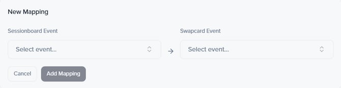 Once the integration is connected, a window will appear prompting you to map your Sessionboard events with Swapcard ones. Select the SB event from the dropdown list, then choose the Swapcard event in the right-hand dropdown.