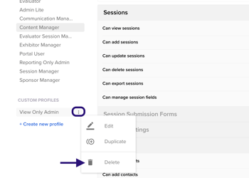 Hover over the custom profile you would like to delete and select the three vertical dots to the right of the profile name to display the Delete option.