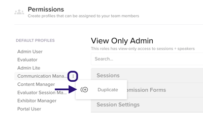 When duplicating the default roles "Session Manager" or "Evaluator Session Manager", admin users can now leverage filters to control what sessions and contacts these users have access to.