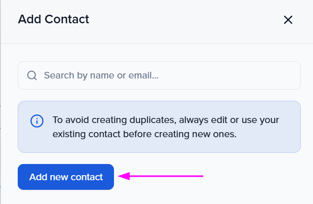 Within the Contacts module, select the "Add Contact" button at the top right-hand corner of the screen.