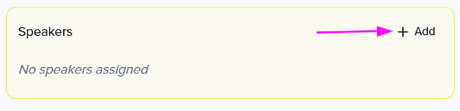 Reminder: Only existing event contacts will appear in this dropdown. If a speakers name doesn't appear, check to confirm they're contacts in your event.