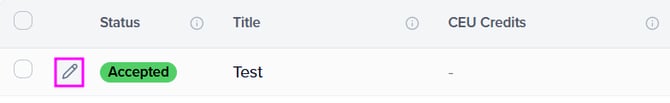 Once a speaker is created as a contact, navigate to the Sessions module and click the pencil bolt icon next to the session to which you want to add the speaker.