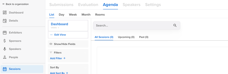 Your event agenda can be viewed from Sessions > Agenda. Only submissions with an accepted status will be accessible from your Agenda.