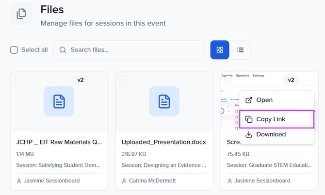 Sessionboard now offers an intuitive experience for speakers upload files and communicate with event organizers via the event portal. With a generous file size limit of 1.95 GB per file and built-in tools to manage versions and comments, our solution lets you regain control of the content management process.