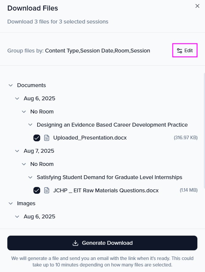 Once complete, click Generate Download. You will receive an email once the file is ready to download.