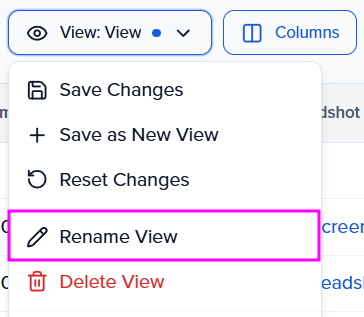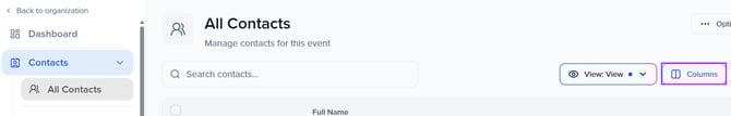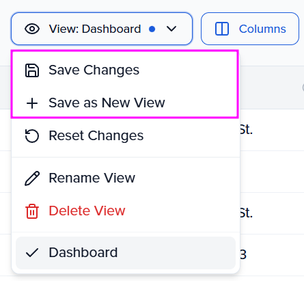 Select "Columns" to add, order, and hide fields that you want to be shown on your dashboard view.