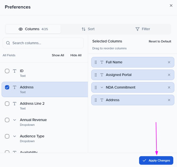 Once complete, do not forget to select "Apply Changes" at the bottom of the pop-up modal.