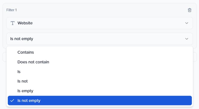 Within the pop-up modal, select the field that you would like to filter by. Next, you will be able to apply settings to this field to further filter by, such as: