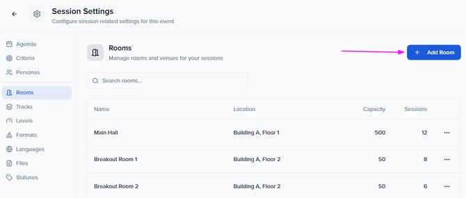 - Room Visibility: Identify what rooms are visible when scheduling sessions for your Agenda (Rooms View).