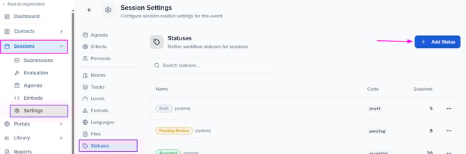 Customize your event by creating custom session statuses tailored to your event-specific workflows, ensuring efficient session tracking and management.