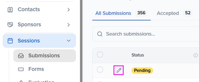 Select the pencil icon to the left of the session you wish to create a subsession.