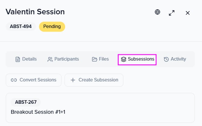 You can create subsessions from scratch (continue reading below to learn more) or convert existing sessions into subsessions. If needed, you can also revert a subsession to a primary session.