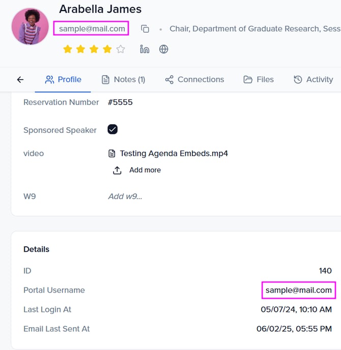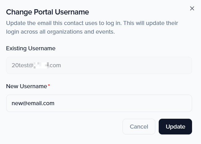To ensure the contact can access the event portal with the correct email, follow the steps below to update the contact's portal username: