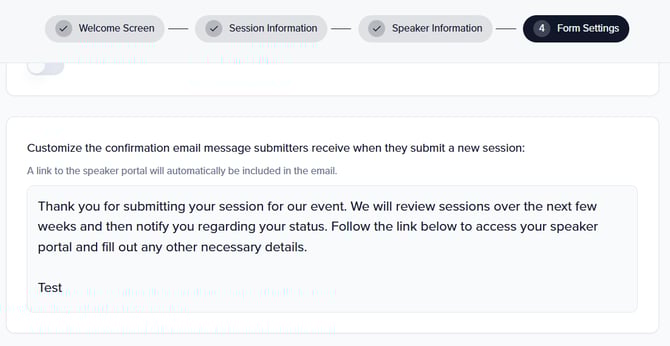 Confirmation emails are sent to session submitters once they have completed the submission form.