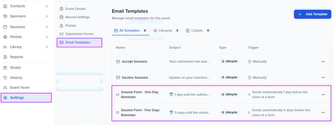 - Customization: Teams can customize the subject line and body text of the draft submission reminder emails from the Email Templates page.