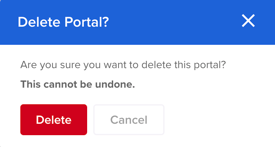 Select the three ellipse dots to the right of the portal that you would like to delete and select the 'Delete' button.