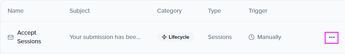 To manage the actions for an email template, select the three dots to the right of the template name.