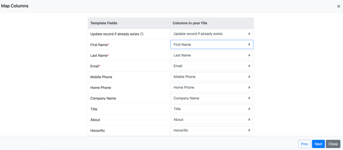- Currency & file field types (excluding headshot) can not be imported at this time.