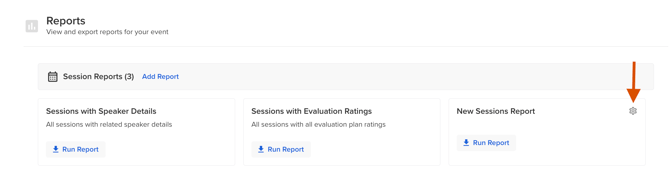 Relationships: Select the relationships (i.e. session speakers, evaluation plans, session sponsors) to include in the report. Each relationship will correspond to a column within the report.