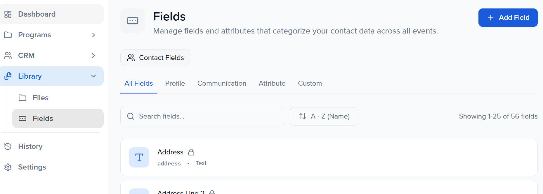 - Areas of Focus: Categorizes contacts based on topics or areas of expertise, helping you analyze trends and speaker alignment (references the standard session field Tags).