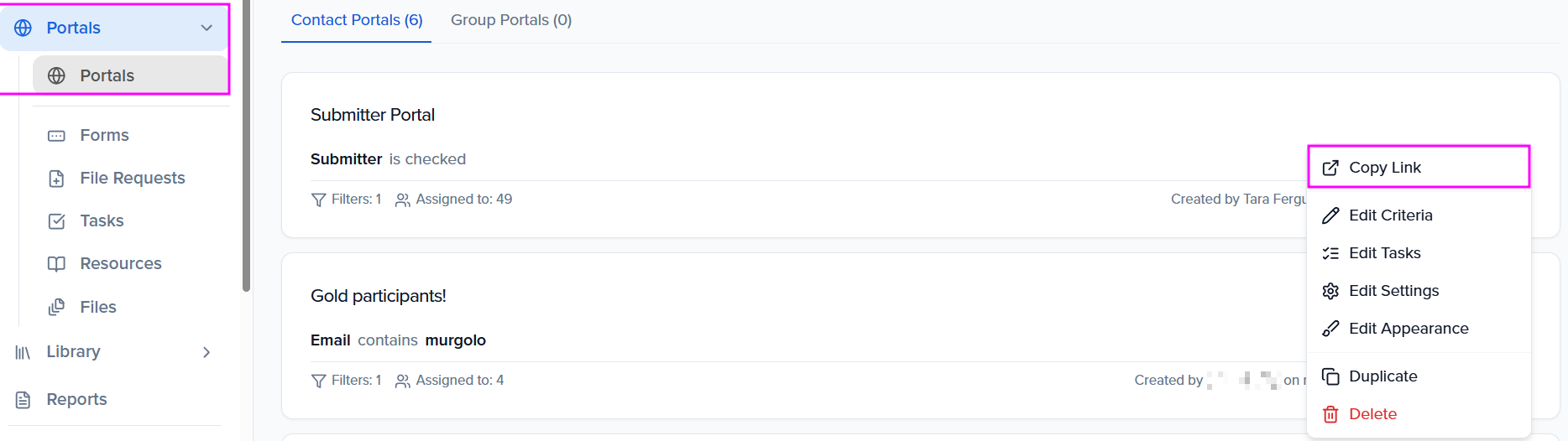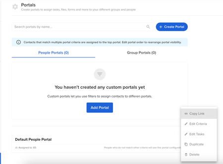Within the Portals module, select the ellipses to the right of a portal and select Copy Link.