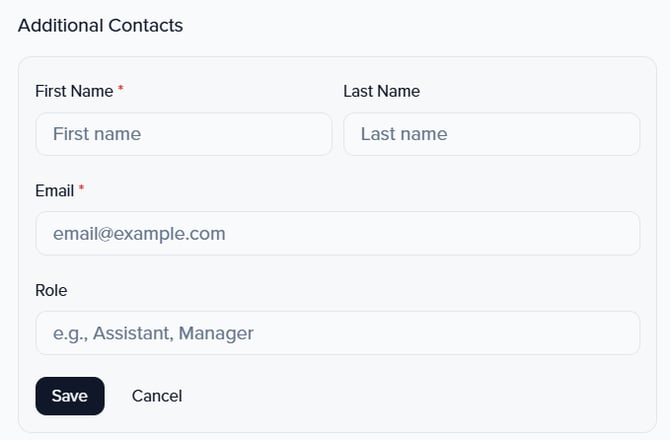 | Use the dropdown field “Who should receive this email” to select the association of the primary contact that the additional contact is linked to. |