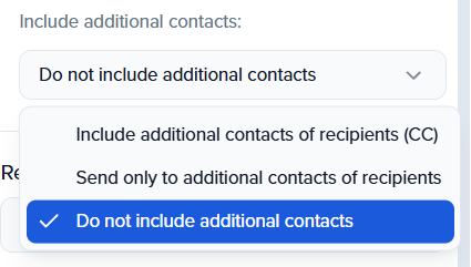 In the subfield “Include Additional Contacts”, use the dropdown to determine how the additional contact should receive the email: