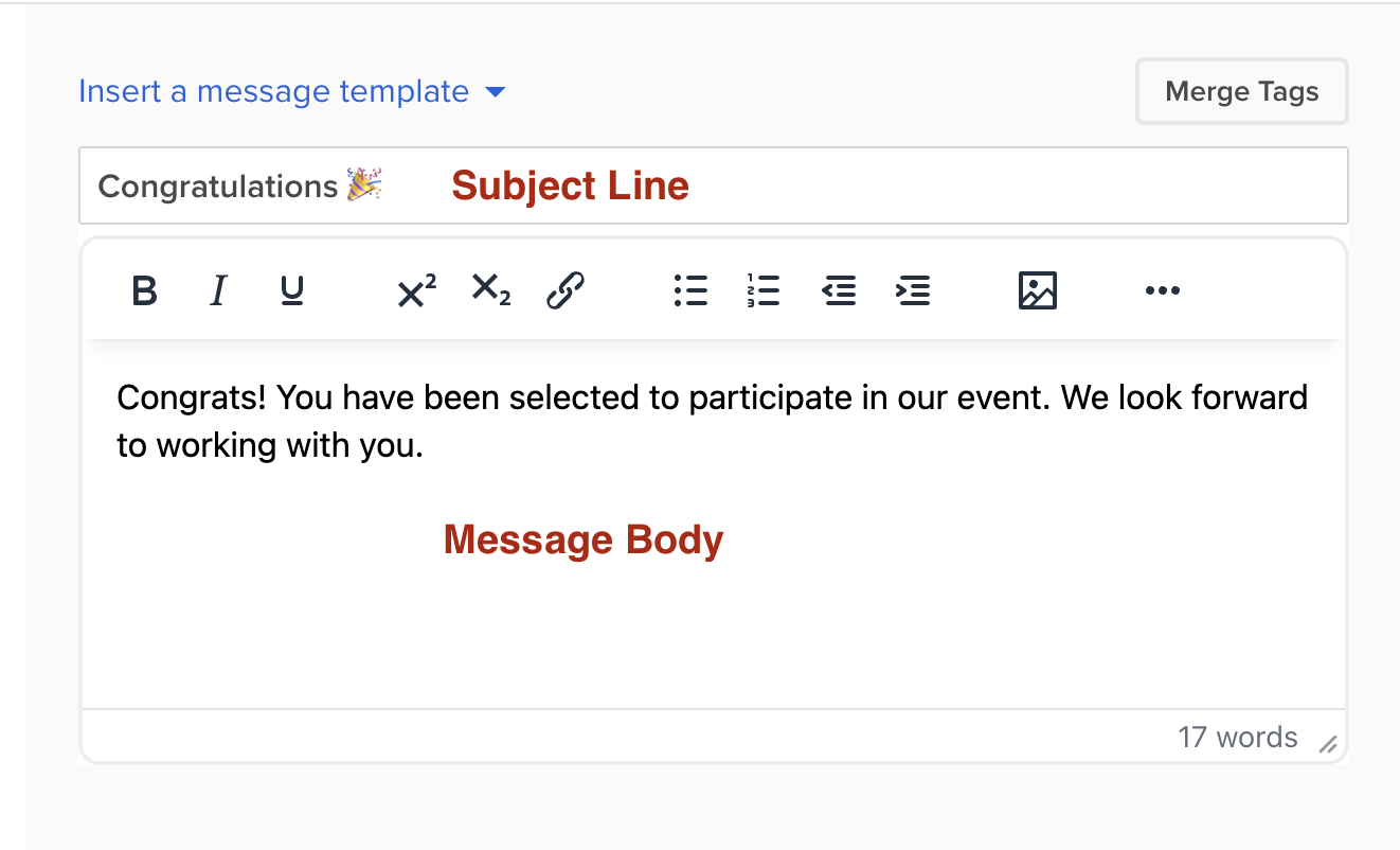 1. If you wish to use an email template that you have created, select "Insert a message template".