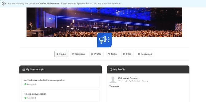 As an admin user, to view what a portal will look like for a speaker, sponsor, or exhibitor, follow the steps below: