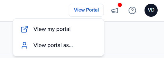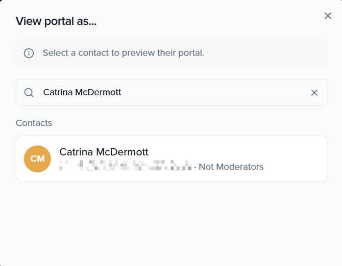 3. Select 'View portal as...' and a pop-up window will appear. Here, enter the name or email of the contact (or group) you would like to preview a portal for.