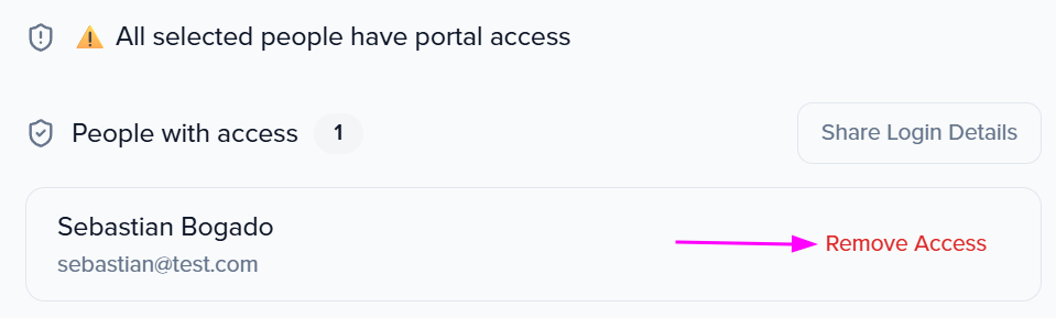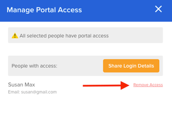 Once portal access has been removed, you will be given the option to grant them portal access again.