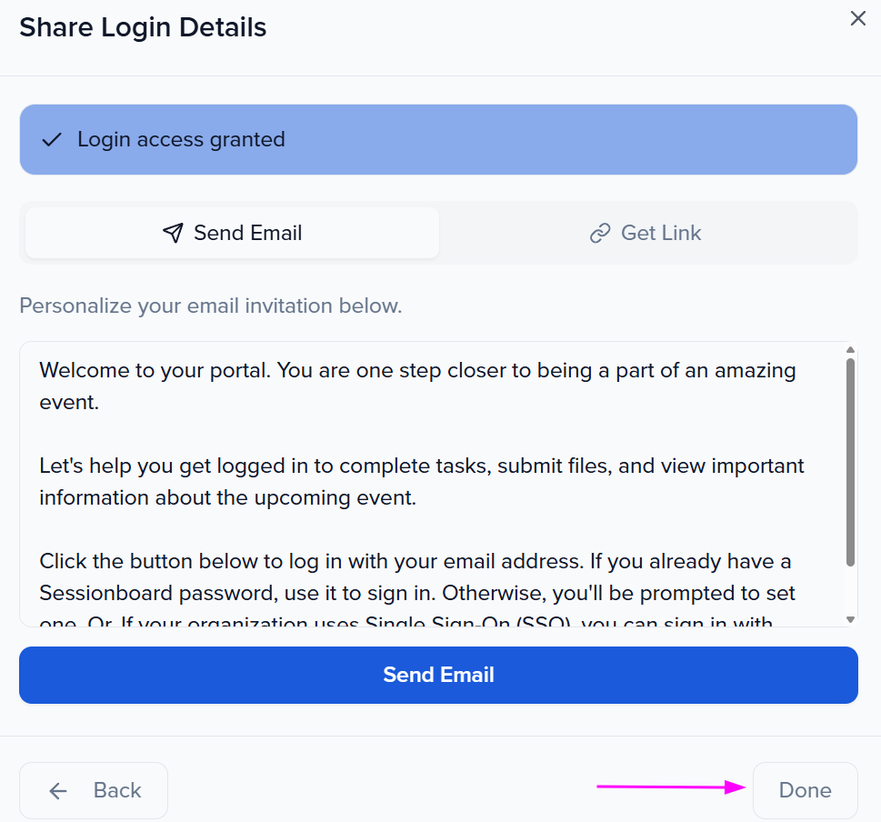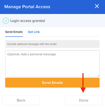 Once you have selected the button 'Give Portal Access', in the following window, click the button 'Done'.