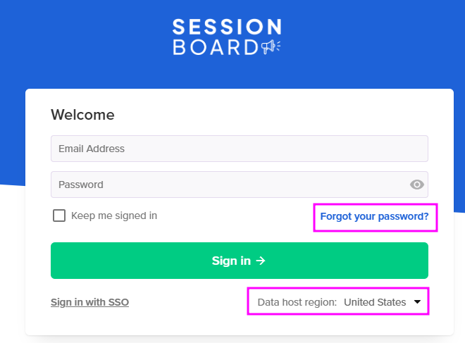 If you do not receive the email, it means your email is not associated with any Sessionboard account, or you're at the wrong data host region.