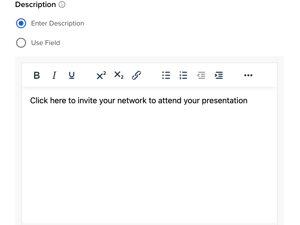 Description: Example descriptions can include: "Click here to invite your network to attend your presentation"