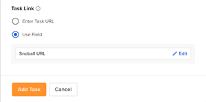 Task Link: Select Use Field. Within the pop-up window, locate and select the field you previously created (Snoball URL).