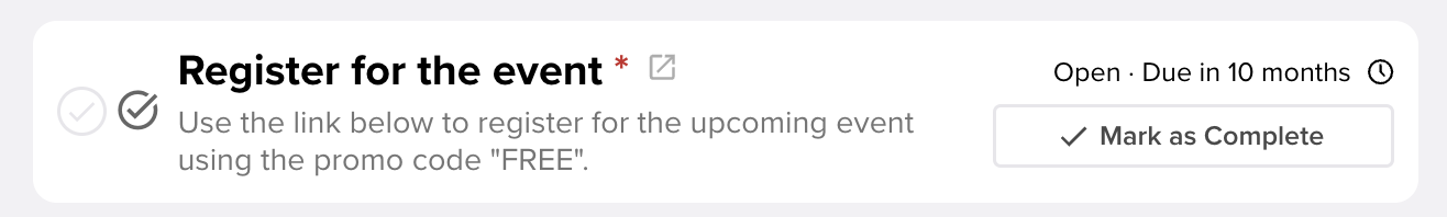 Mark task as complete: The task can be marked as completed in one of two ways (see below). Choose the option you would like your portal users to experience:
