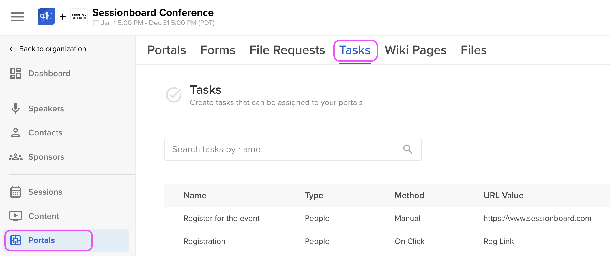 Once you have created your task, the task will need to be assigned to the portal(s) your event contacts have access to.