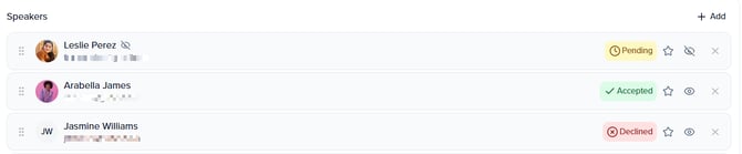 Use the dropdown field within the Status column to assign an accepted, pending, or declined status to a speaker.