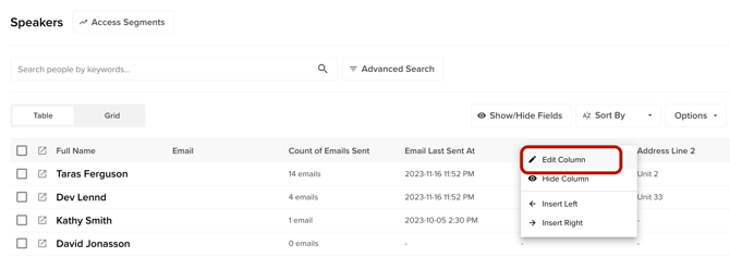 To edit a system field ensure the field has been added to your dashboard view within 'Contacts' and right-click on the field name. From the pop-up window, select 'Edit Column'.
