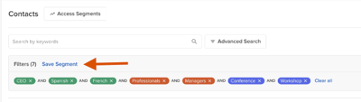 Once you have filtered down your list of contacts that you would like to add to a list, select 'Save Segment' at the top of the page.