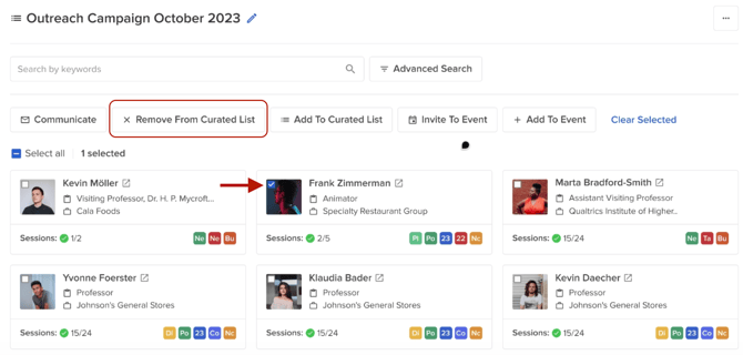 Within 'Segments' select the curated list you would like to remove a contact from.