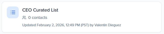 Curated List: A list that will save existing contacts and not update unless you manage them manually.