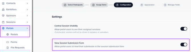 Enable View Session Submission Form in your portal settings.