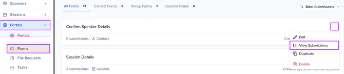 When a form is submitted, the new speaker information will be viewable by clicking 'View Submissions'.