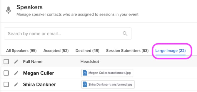 ❗️Any new headshots submitted or uploaded by the event team will automatically be compressed to your desired size.