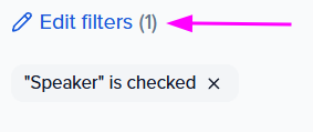 - In the filter section, ensure the role “Speaker” is filtered by the criteria "is checked".