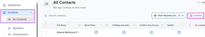 Tracking who has completed tasks in the Event Portal can be done directly within the Contacts, Sponsor/Exhibitor, or Sessions modules, depending on the type of task created: