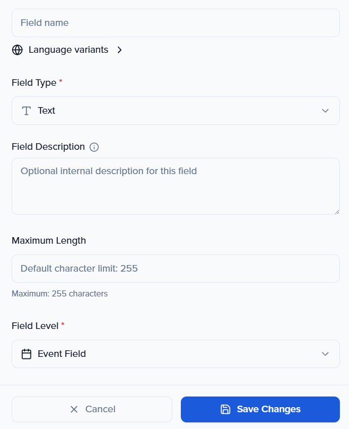 Once you’ve completed all the details, click Save Changes to add your new field. The custom field will now appear in the list of fields under the selected category and is ready to use.